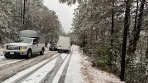 PARRAL.- La carretera Guachochi–Parral fue cerrada de manera temporal a la altura del tramo conocido como Los Altos de Metatitos, debido a la acumulación de nieve que provocó que un camión de pasajeros quedara varado, invadiendo los carriles de circulación y generando riesgo para los automovilistas.