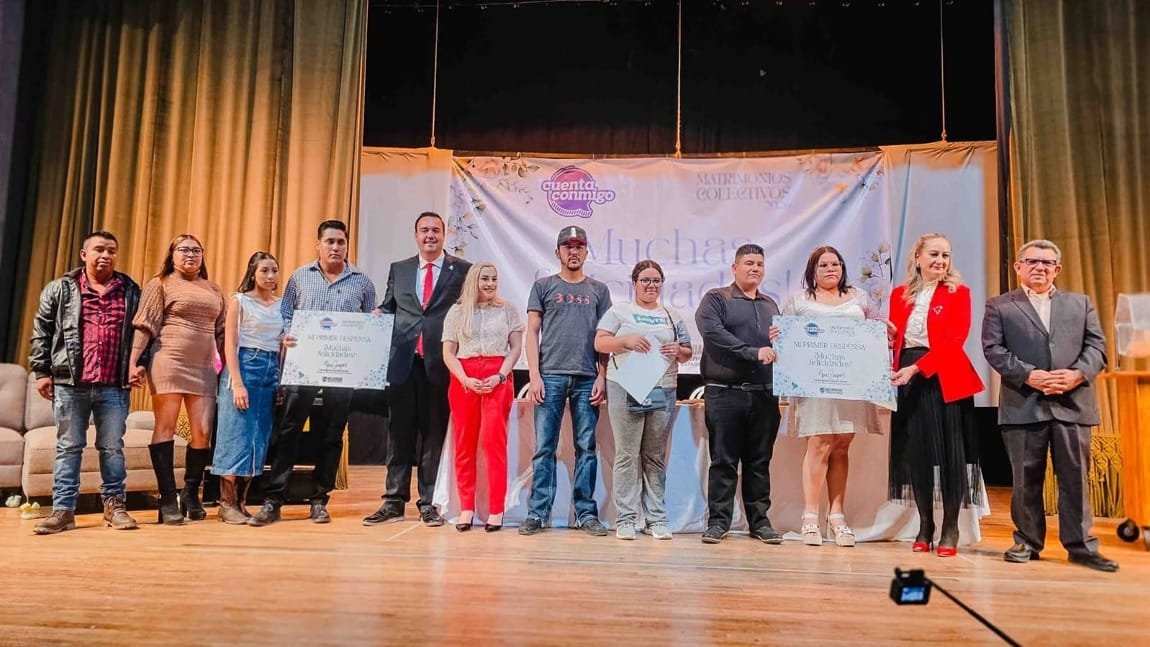 CAMARGO.- Un total de 100 parejas camarguenses formalizaron su unión legal como parte del programa Matrimonios Colectivos 2026, una iniciativa impulsada por el Gobierno del Estado a través del Registro Civil, que busca brindar certeza jurídica a las familias y fortalecer el tejido social del municipio.