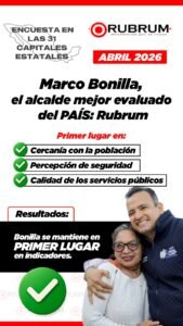 CHIHUAHUA.- El alcalde Marco Bonilla encabeza resultados nacionales al posicionar a Chihuahua Capital en el primer lugar del ranking de capitales estatales en percepción de seguridad, servicios públicos y desempeño de gobierno, de acuerdo con la más reciente encuesta de la casa consultora RUBRUM correspondiente a abril de 2026.
