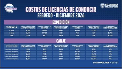 CHIHUAHUA.- La Secretaría de Hacienda del Gobierno del Estado informó sobre los costos para la adquisición de la licencia de conducir en 2026 y aquí te lo decimos.