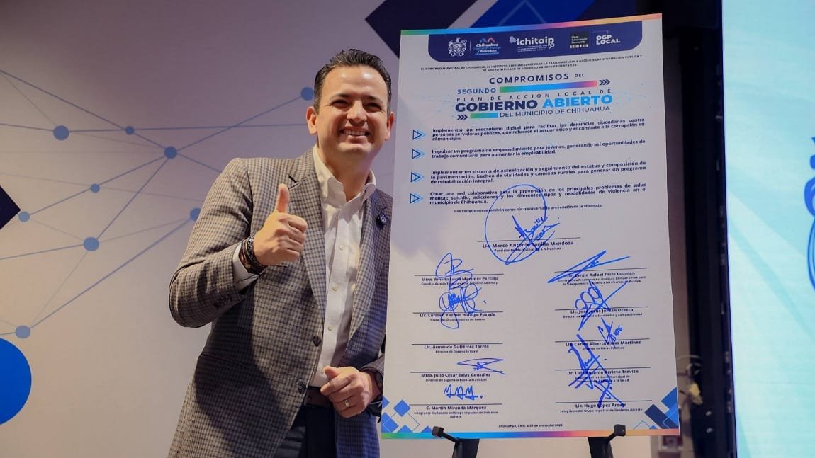 «Con la firma de estos compromisos, reiteramos que el gobierno abierto en Chihuahua no es una excepción: es una ruta. Una ruta que apuesta por la innovación pública, por el uso de tecnologías, por lenguaje claro, por formatos abiertos y por una participación ciudadana cada vez más incidente», expresó Marco Bonilla.