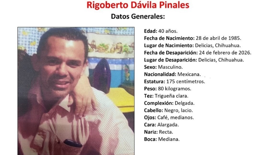 Fiscalía emite ficha de búsqueda por desaparición de Roberto Dávila en Delicias