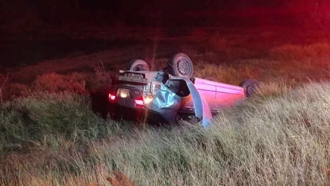 Aunque no pudo confirmar si se trataba de un perro u otra especie, intentó evitarlo y realizó una brusca maniobra con el volante, lo que provocó que perdiera el control de la dirección precipitándose hacia su lateral derecho y cayendo a un predio agrícola donde quedó sobre su toldo con los cuatro neumáticos hacia arriba.