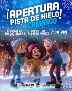 CAMARGO.- El Gobierno Municipal de Camargo invita a todas las familias camarguenses a ser parte de una experiencia única, con la apertura de la pista de hielo, un espacio pensado para la convivencia, la diversión y el fortalecimiento del tejido social.
