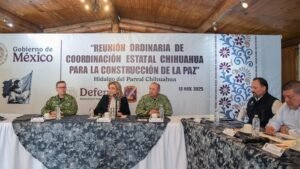 PARRAL.- La gobernadora Maru Campos encabezó la sesión de la Mesa Estatal de Construcción de Paz que se llevó a cabo en Parral, con el fin de analizar las estrategias implementadas por los tres niveles de Gobierno para atender la seguridad en la región.