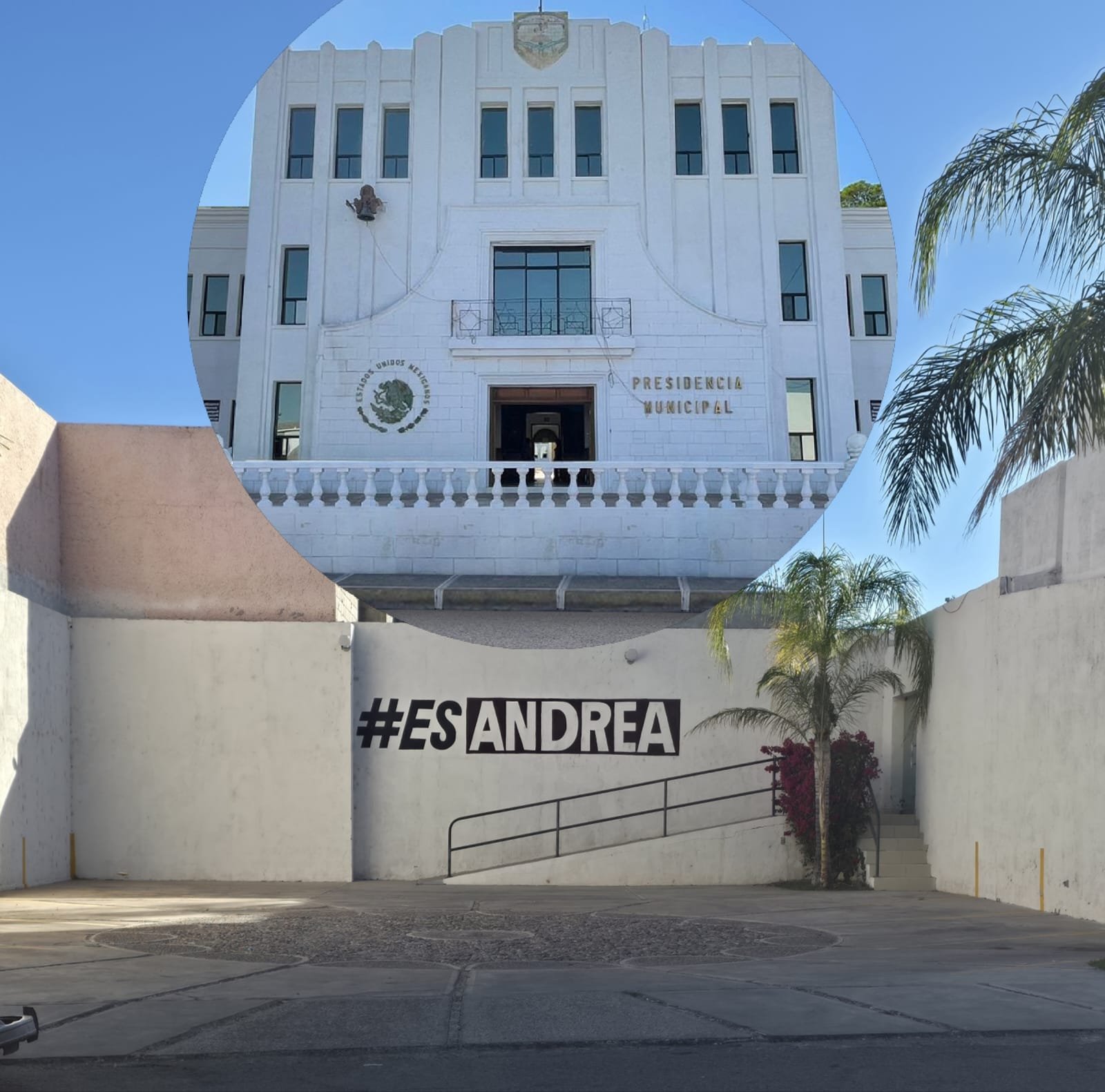 Pintan barda de Andrea Chávez frente a Presidencia Municipal de Camargo