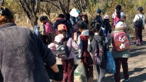 CAMARGO.- Como parte de una actividad de la escuela los alumnos de tercer grado del plantel educativo Netzahualcóyotl salieron a los alrededores de su escuela para realizar una jornada de limpieza llamada «Como Cuidar Nuestro Ecosistema».