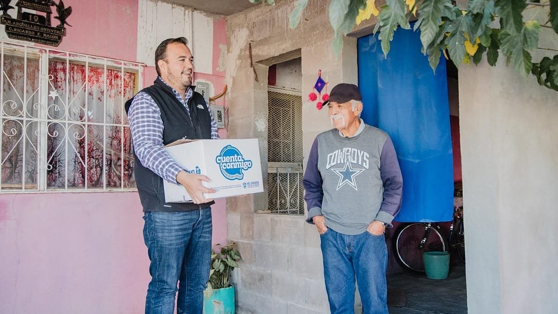 CAMARGO.- Como parte de las acciones de apoyo social y cercanía con la ciudadanía, el presidente municipal Jorge Aldana realizó una visita a don Jaime, a quien se le hizo entrega de despensas en beneficio de su familia.