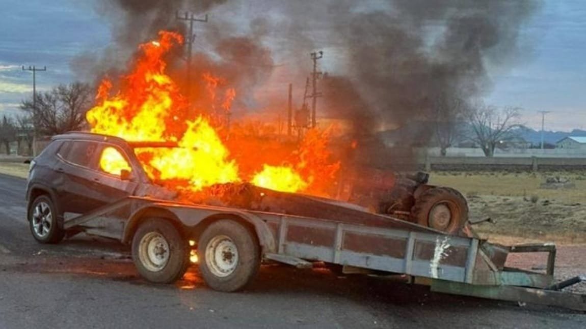 A consecuencia del impacto, el Jeep se incendió en el lugar. Tanto el conductor del tractor como cuatro acompañantes, todos hombres, resultaron con lesiones leves, por lo que fueron trasladados a un hospital para su valoración médica.