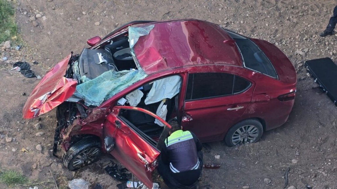 El vehículo involucrado, un Honda City en color guinda, aparentemente circulaba de norte a sur cuando salió del camino y cayó hacia un desnivel en un puente tipo vado, quedando prácticamente en pérdida total tras el fuerte impacto.